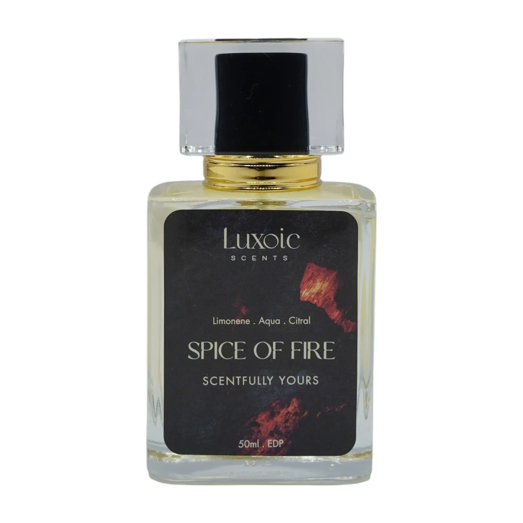 Spice of Fire by Luxoic Scents is an explosive Eau de Parfum crafted for those who thrive on energy and intensity. This 50ml fragrance combines the citrusy zing of limonene, cool aquatic tones, and the sharpness of citral, creating a powerful yet clean scent trail.